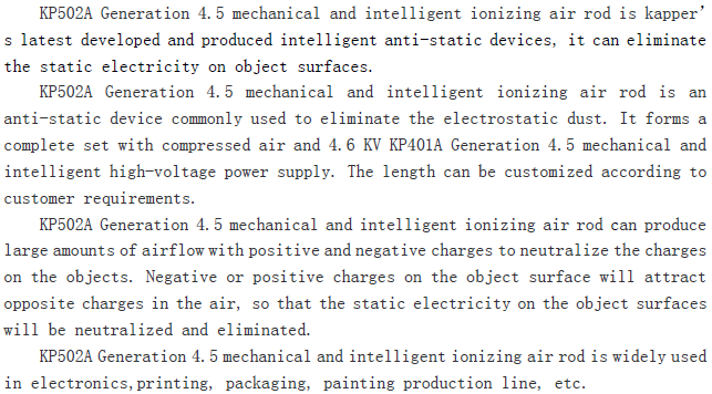 KP502AGeneration 4.5 mechanical and intelligent Ion rod
