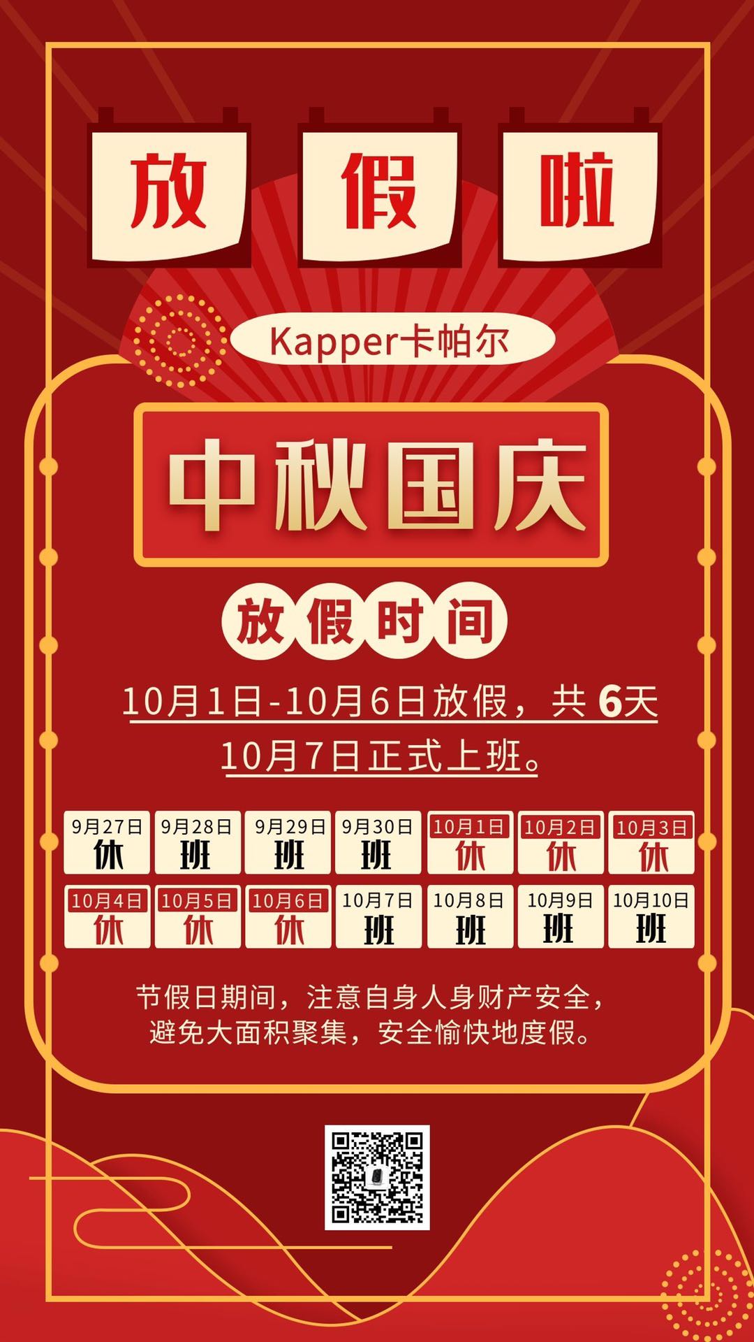 Kapper卡帕爾中秋國慶放假通知!