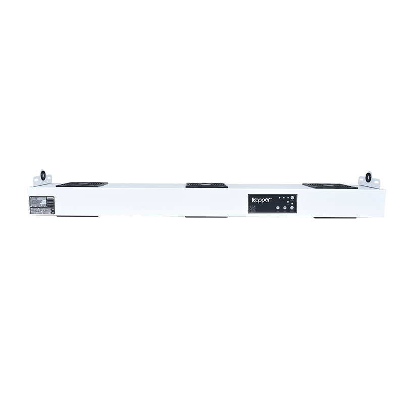 KP1003D第4代半智能型懸掛式三頭離子風機是卡帕爾公司研制生產的消除物體表面靜電的智能型除靜電裝置。