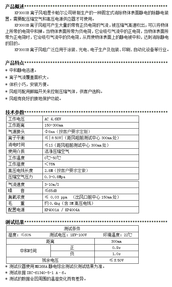 KP3003B第三代扇形離子風咀
