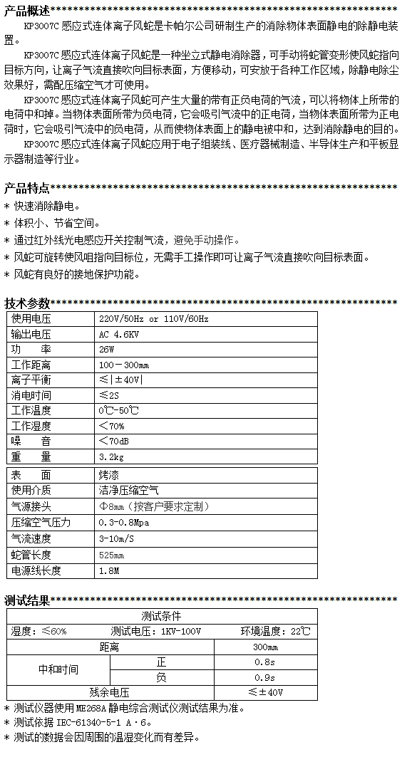 KP3007C第三代感應式連體離子風蛇