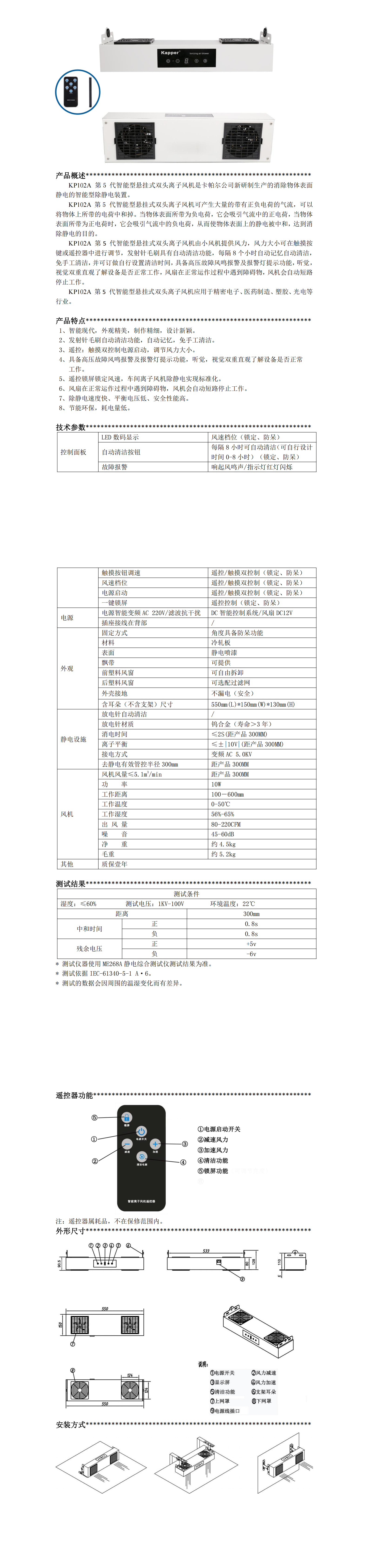 KP102A第五代智能型懸掛式雙頭離子風機