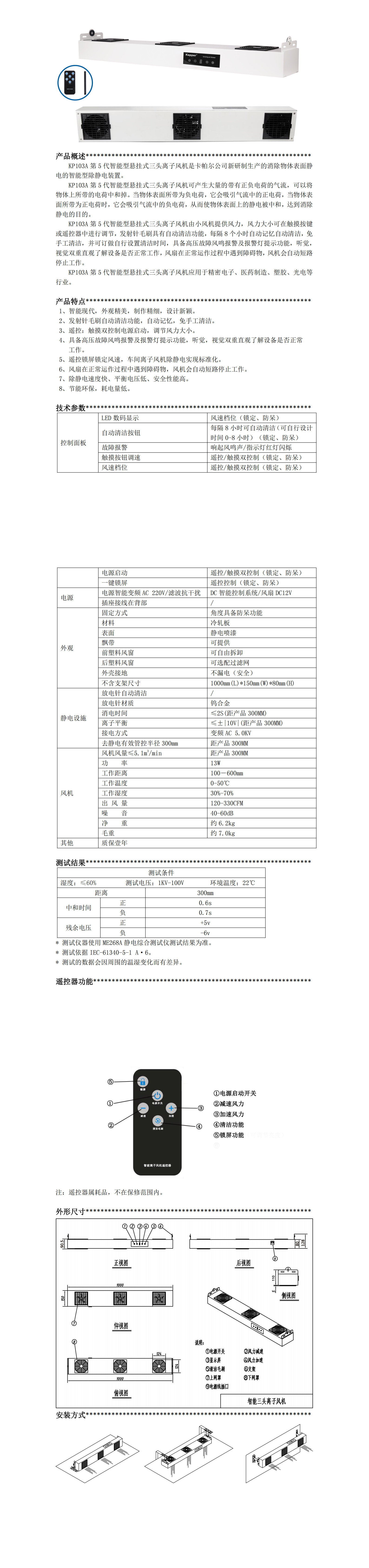 KP103A第五代智能型懸掛式三頭離子風機